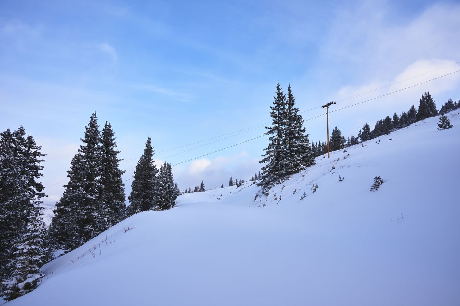 Deep in the Colorado Wilderness, I hiked in -11ยบ F temperatures to get this image. I drove towards the location during a blizzard and as I was nearing the summit the snow let up allowing the morning sun to begin softly lighting the scene.